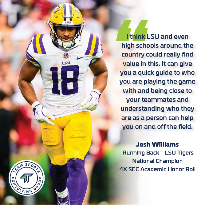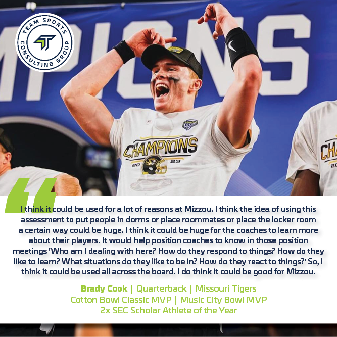 TSCG isn’t just another consulting group—it’s a personal development engine. They help athletes become better teammates, students, leaders, and people. Every athlete gets a personalized “How Best to Coach/Motivate/Lead Me” guide from a short 5-minute survey. This assessment gives coaches an inside look into how to bring out the best in each player, creating stronger, more cohesive teams.