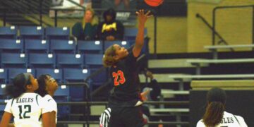 Photo: #23 Janae Johnson makes a steal and bucket for SGP BY BRIAN GOSSET MANSFIELD – South Grand Prairie went on a 21-9 run in the final quarter and a half to beat Mansfield Lake Ridge on its court during the second round of the Mansfield ISD Spring Creek BBQ Invitational on Monday. Monday was … Continue reading South Grand Prairie upsets Mansfield Lake Ridge at MISD Spring Creek Invitational