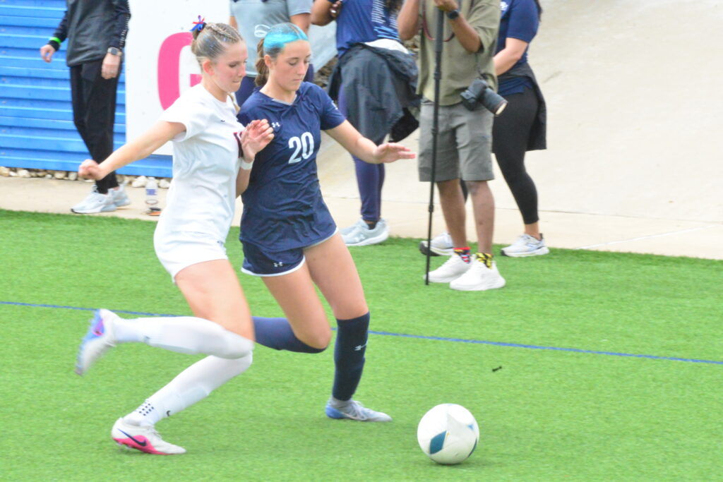 Photo: Walnut Grove’s Rowan Fitzpatrick fights a Smithson Valley player for the ball during the 5A D1 title match on